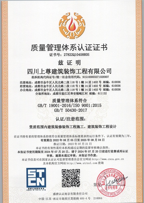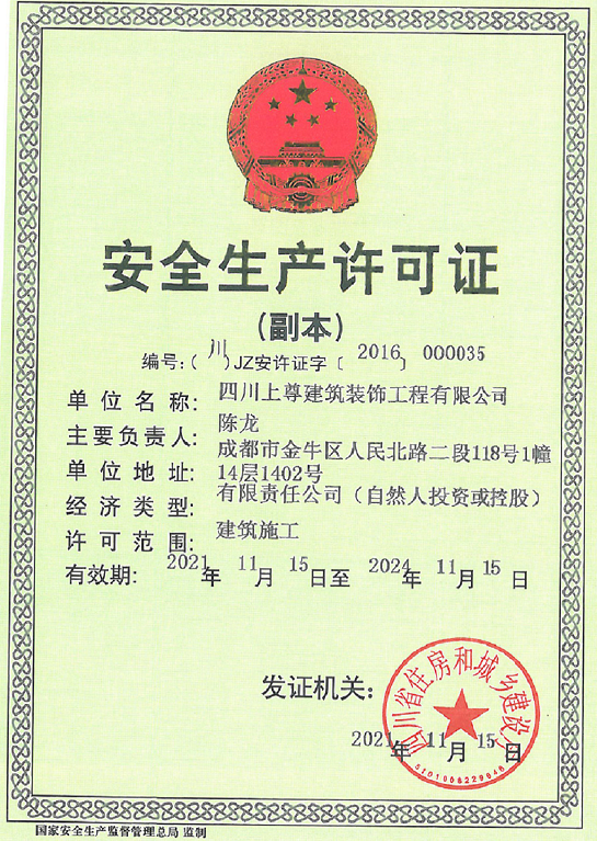 四川上尊建筑裝飾工程有限公司(原呈上設(shè)計(jì)事務(wù)所),成立于2015年,現(xiàn)員工200余人(中高級(jí)職稱30人),主營(yíng)市政建筑工程、路橋工程、建筑裝飾裝修工程、裝飾設(shè)計(jì)、機(jī)電安裝工程和園林綠化工程;公司于2014年投入2000萬(wàn)購(gòu)買金牛萬(wàn)達(dá)廣場(chǎng)甲級(jí)寫(xiě)字樓C座1500平米用于辦公場(chǎng)所,注冊(cè)資金5000萬(wàn),公司是成都市建筑裝飾協(xié)會(huì)常務(wù)理事單位,并獲得四川省住建廳頒發(fā)的建筑裝修裝飾工程專業(yè)承包壹級(jí)資質(zhì)和建筑裝飾工程設(shè)計(jì)專項(xiàng)乙級(jí)資質(zhì);2015年榮獲四川省“消費(fèi)者口碑點(diǎn)贊企業(yè)”稱號(hào),2016年加入四川省川聯(lián)企業(yè)商務(wù)促進(jìn)會(huì)理事單位,2017年榮獲“四川省愛(ài)心企業(yè)”稱號(hào),2018年榮獲“四川匠心成就企業(yè)”稱號(hào),2019年榮獲“最具影響力企業(yè)”稱號(hào),2021年榮獲“公益愛(ài)心企業(yè)”,2023年獲得“時(shí)代影響力企業(yè)”稱號(hào)。